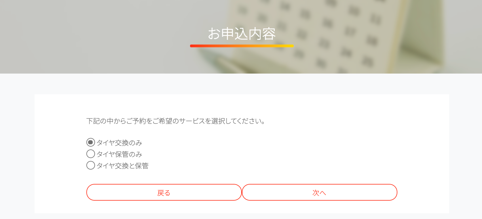 画面の案内に従って、ご希望のサービス内容やタイヤサイズなどを入力します。